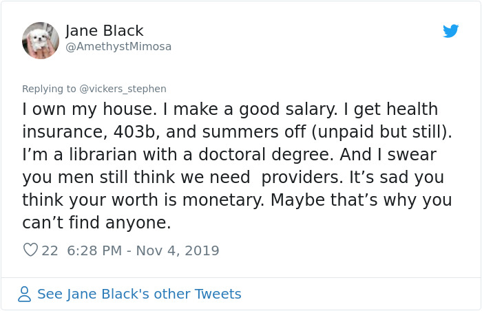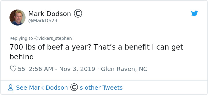 According to a Twitter user, Stephen Vickers, today’s modern woman doesn’t value and appreciate basic qualities like physical protection and being ‘provided for’ the way that they used to- for example, 700lbs of beef a year.