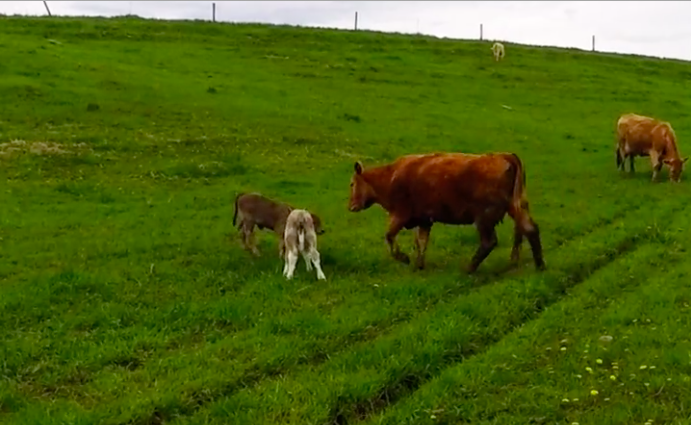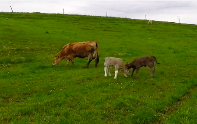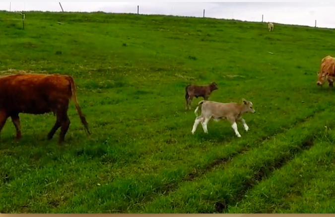 They try out walking and running, which is a new experience. The hills surrounding the farm are the place where the calves can jump out with joy.