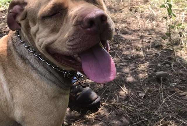 “He must’ve been left there over the weekend in the 100 degree heat because all the grass around him was dead, and he was just excited to see a person.”