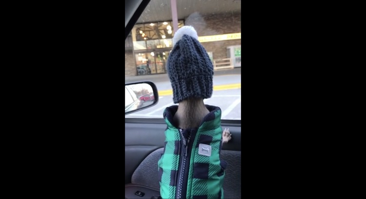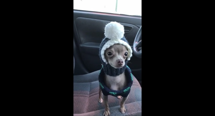 Oscar is waiting in the car along with the one who took the video. Apparently, his human dad stopped to pick up some groceries but the little dog is getting impatient at waiting. Clad in a green and blue coat with zipper at the back and a knitted hat with a white pom-pom on his head, Oscar is the epitome of cuteness as he remains on high alert for his owner to come back.