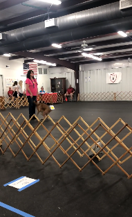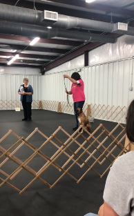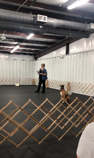 There was a beginner obedience competition where the dog Molly had to listen to the instructions given by the owner and follow them.