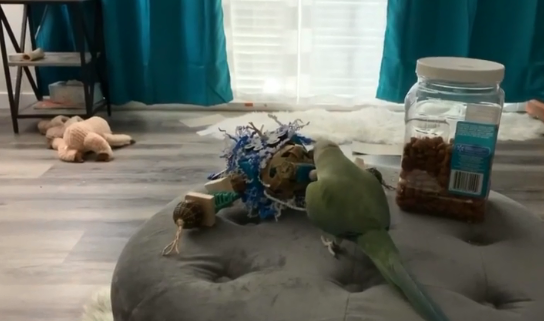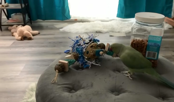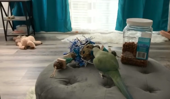 Here is a video of an adorable and super smart parrot who just received a great gift and he is super excited.