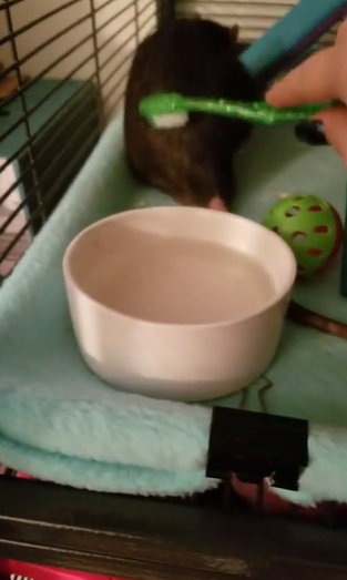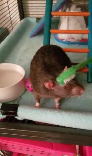The pet seems to enjoy the brushing so much that it even squints his eyes in pure delight. But it seems like the is not the only one. Its cagemate caught up on the owner’s action and desired some for itself.