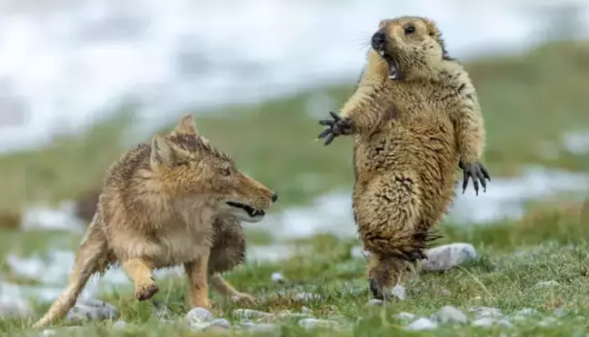 Another picture that recently made headlines was from Yongqing Bao, who snapped a Tibetan fox attacking a Himalayan marmot earlier in 2019.