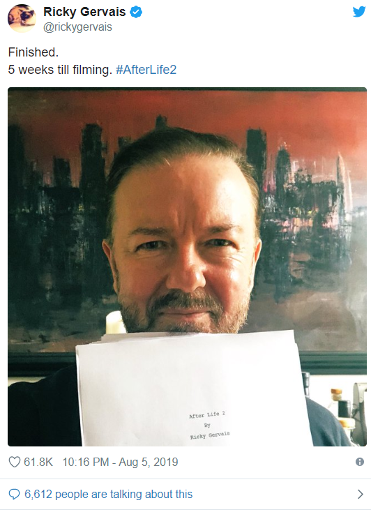 Ricky Gervais posted on Twitter stating how the script for the second season of his brainchild series is all ready and they will start shooting for the same within 5 weeks of time.
