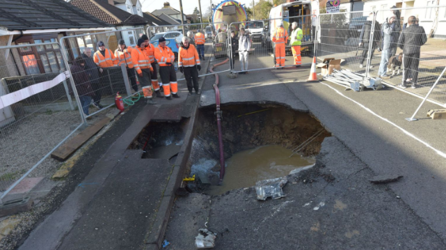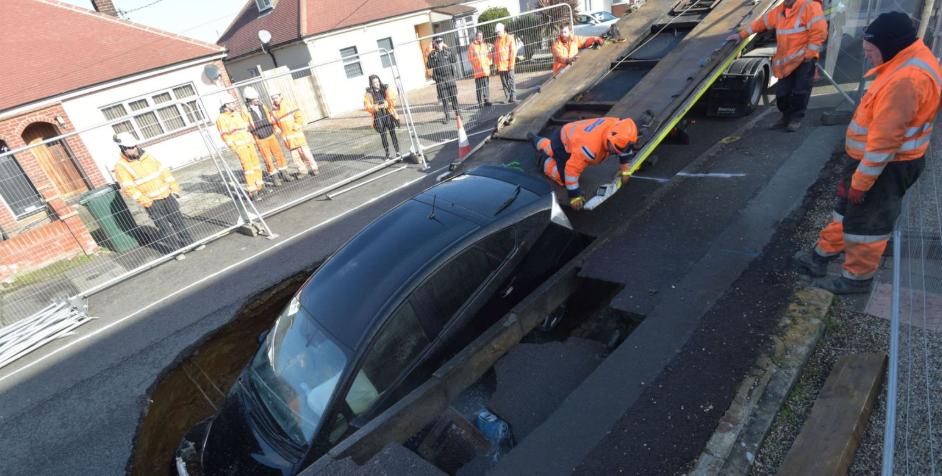 A car fell into a huge sinkhole in the aftermath of Storm Ciara in Essex.