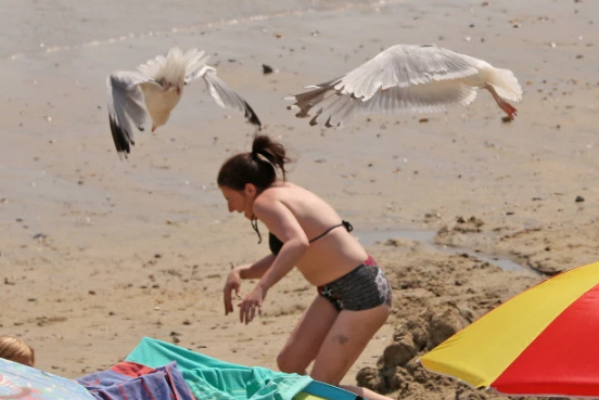 While being out on the beach, all they wish to have is peace but the seagulls have something else in mind for the sunseekers.