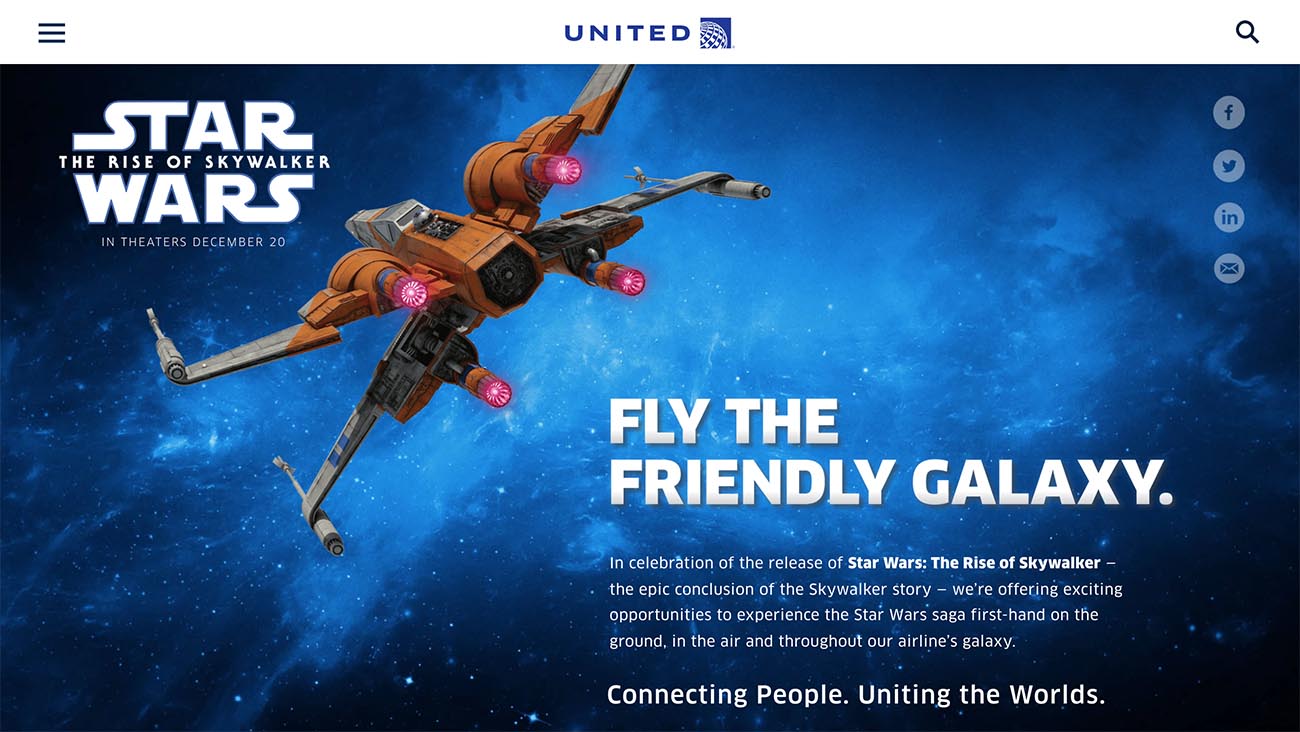 “United Airlines and the Star Wars franchise share a common goal: connect people and unite the world.