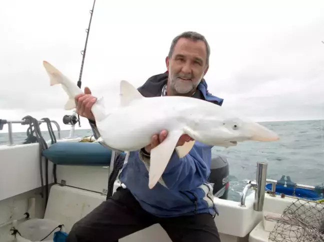 50-year-old Jason Gillespie from Hampshire caught the all-white shark that measured around 3ft near the Isle of Wight in the UK.