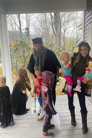 The couple posed with their six children in an array of fun and playful costumes on Sunday, with the images turning into a viral debate online.