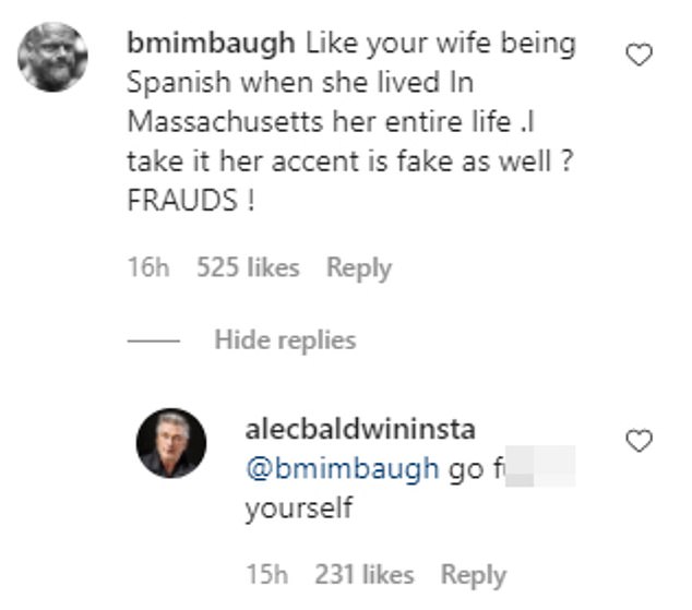 Alec furiously replied and said: “You should shut the f*** up and mind your own business.”