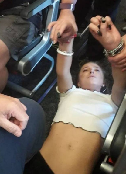 The passengers suffered from fear, only because of the aggressive, dangerous, and abusive behavior of Miss Haines. Her behavior in the flight also included attempting to open the doors as well!