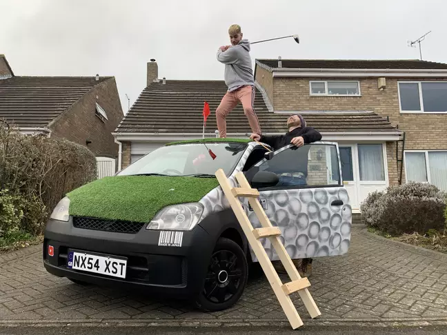 Two amateur golf players took their love for golf to a whole new level by converting a car into a moving golf range.