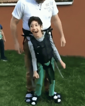 INSTAGRAM - The father of the paralyzed son makes him believe he can walk.