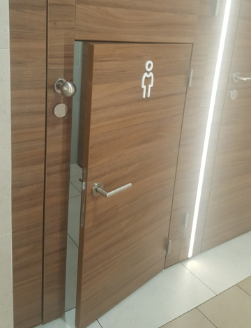 ADVERTISEMENT REDDIT - The large door has a small kid’s door to the toilet stall.