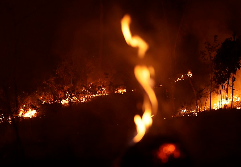 From the picture, one can get a glimpse of the infernos spotted in orange color overlaying on the nighttime imagery, including towns and cities shown in white and forest are shown in black. Additionally, for woodlands, the picture shows the color grey.