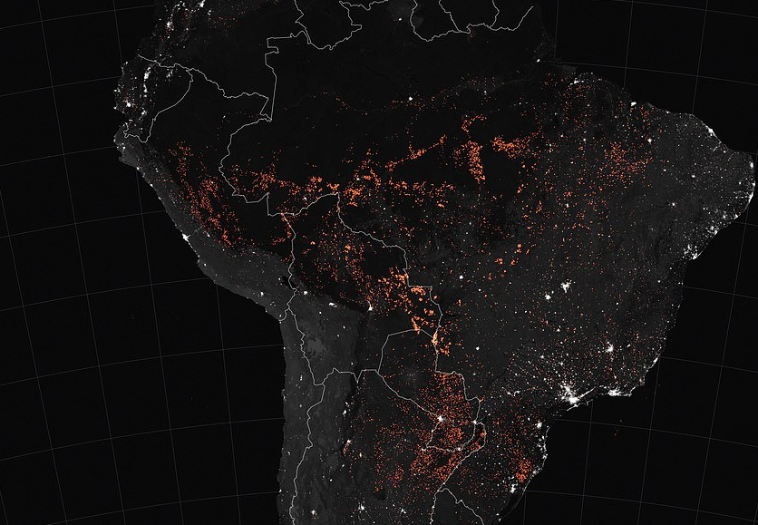 By the pictures, one can see South America lit up with large blazes continuing to burn.