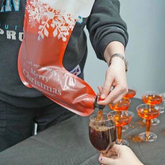The stocking wine dispenser has a capacity of 2 liters of wine. And what is the best part? The best part is that the stocking is only going to cost you £18.97, isn’t it amazing?