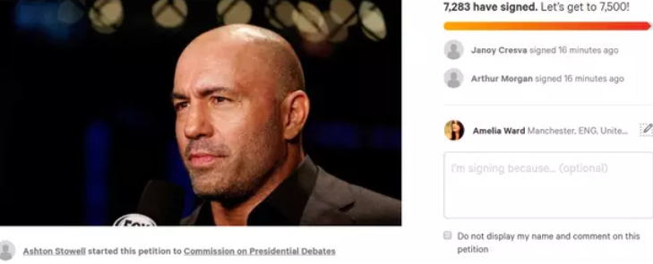 People have been commenting on the petition stating that they want Joe Rogan as one of the moderators for the 2020 elections presidential debate.