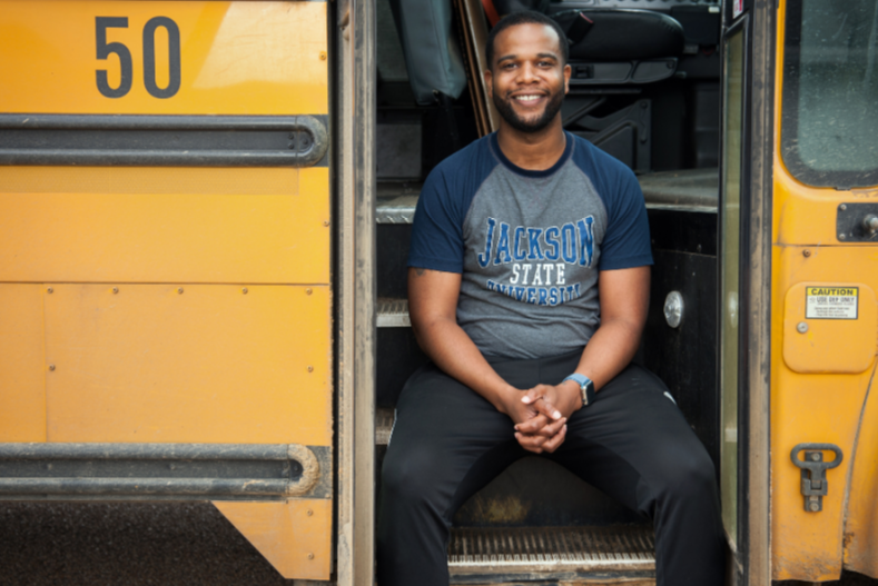 This teacher drives around in a yellow school bus from Monday to Friday, delivering free breakfast and lunch to the students. And he does all this in between taking daily online classes.