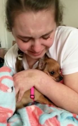 She couldn’t hold back her happy tears after getting her little support dog with her.