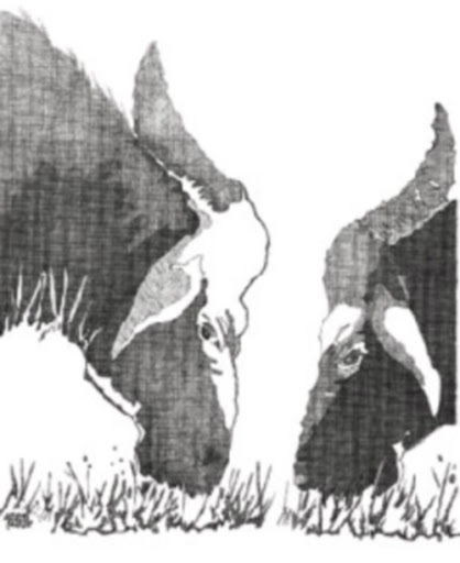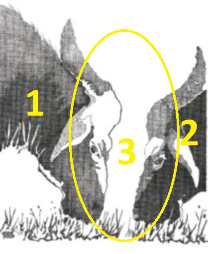 To spot the third animal – a big white cow – focus on the white space between the two black water buffalos. Did the third figure finally emerge?