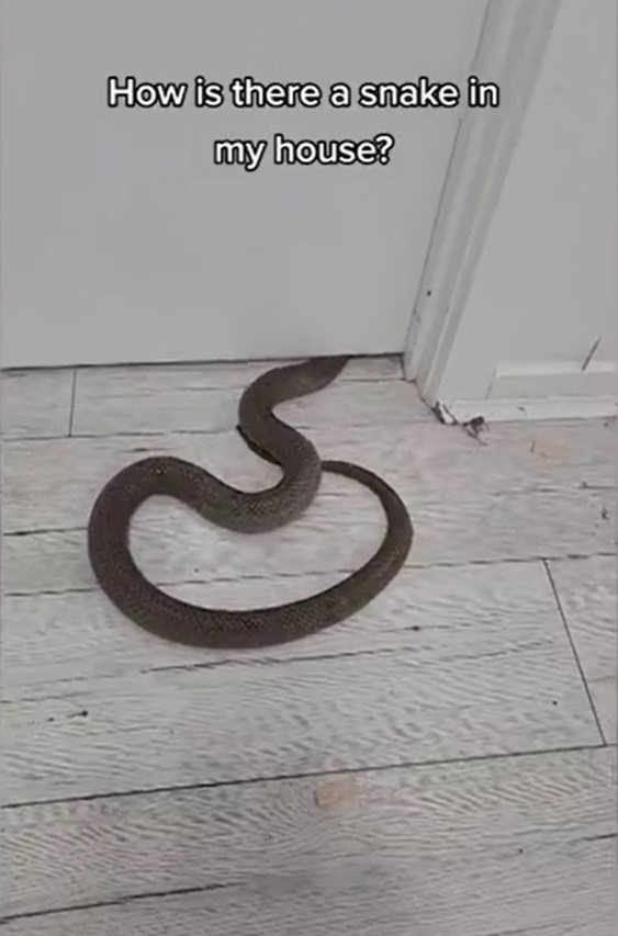The clip quickly went viral with thousands of people sharing their disbelief over how easy it was for the reptile to get inside the house.