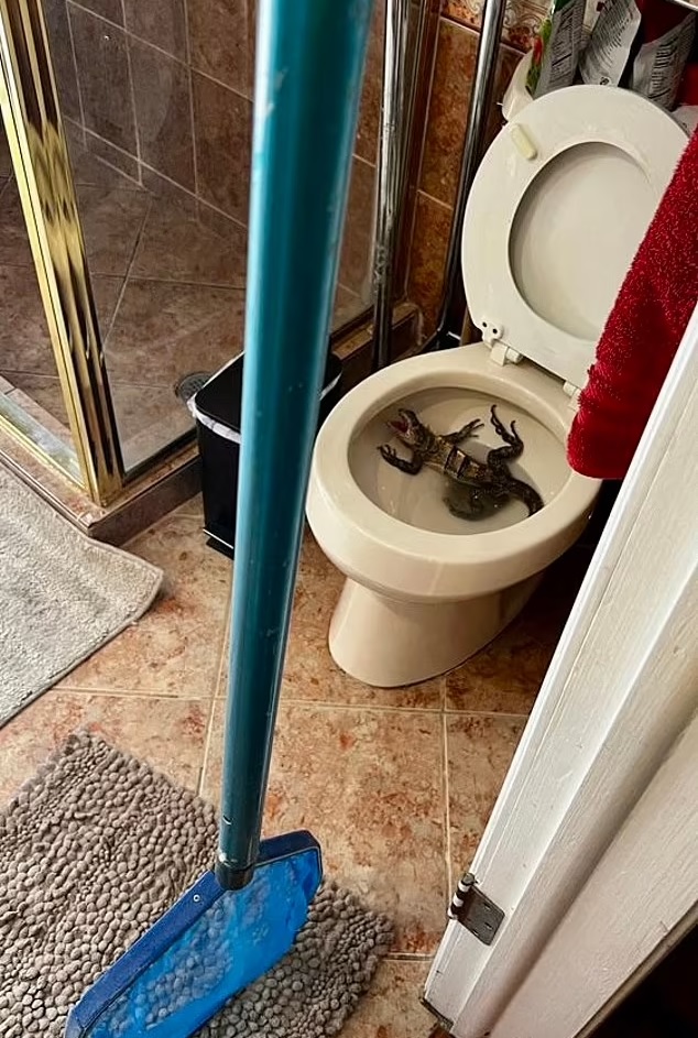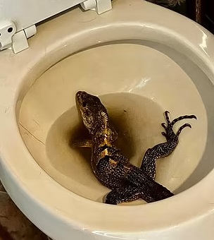 A man was in for a big shock as he made a trip to the bathroom only to spot a giant iguana in his toilet bowl.