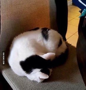 Need some help? What you’re looking for is an adorable little panda! While the panda may not be real, its shape can be clearly visible when you focus on the feline’s spotted backside.