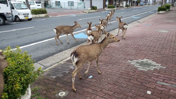 In Japan, for example, the deer that are local to Nara Park were seen circling the streets as they search for food. The Sika deer are a local attraction and normally, tourists would be on hand to feed them various treats. In fact, there are crackers that are sold in the park that are meant specifically for tourists to feed to the deer. But with human traffic drastically reduced, the deer are forced to venture further in order to get food.