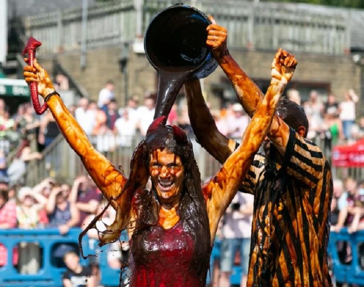 The tried-and-true mud wrestling competition is a staple for community events like these (especially women’s mud wrestling) but one town in Lancashire put a new spin on this by holding wrestling events with gravy instead of mud.