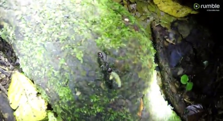 In this particular video, the encounter with the bullet ant happened during a night hike in the Amazon rainforest. An experienced guide named Anna was guiding a group of nature enthusiasts through the rainforest in a small Ecuadorian village near Sacha Lodge. The one-inch bullet ant had just captured a much larger inchworm and was carrying its prize back home.