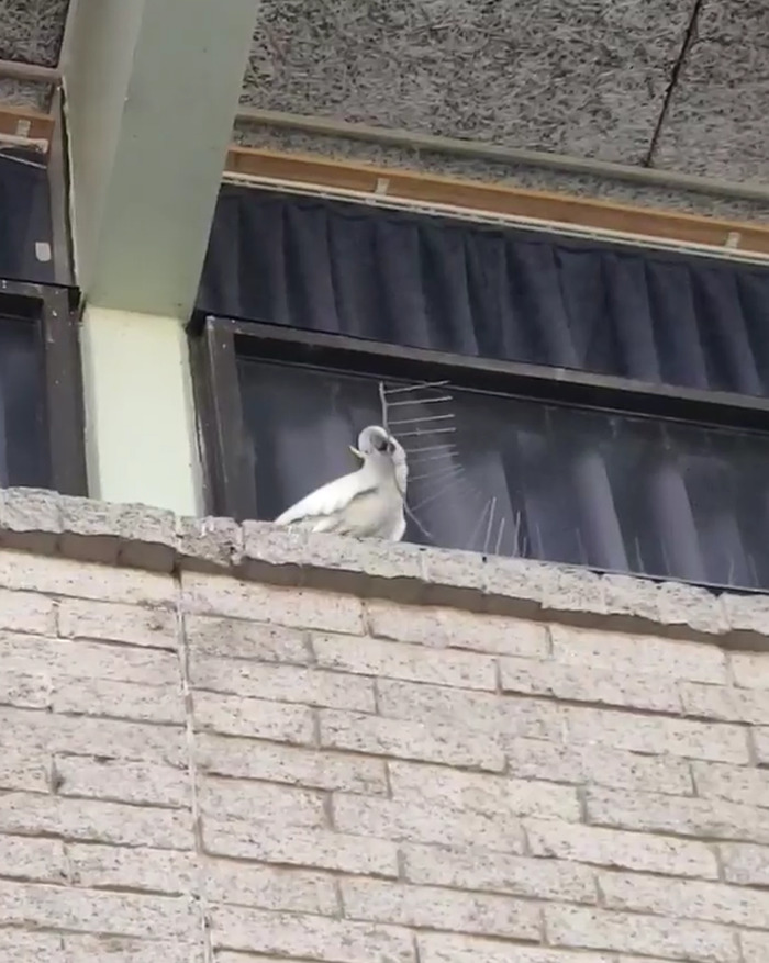 After watching the activity of cockatoo Isaac started filming the bird with a hostile nature. This belligerent bird was walking on a projecting, emerging from a wall. He was picking up that system which is designed to capture birds as is known as a contraption.