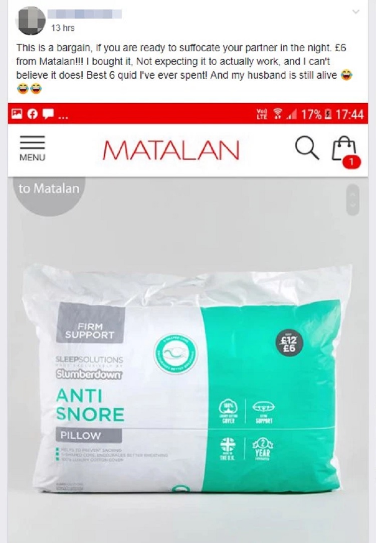 The best advertisement is a testimony from a satisfied customer. So don’t be surprised if stocks of Matalan’s anti-snore pillow suddenly run low because of demand!