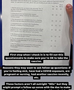 “After you get the shot, they seat us in a room… for 15 minutes just to make sure we’re good,” she wrote.