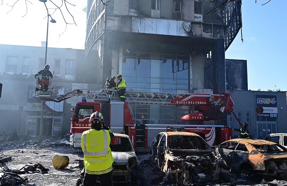 “The cause of the fire still needs to be determined, but it seems that the rapid spread of the flames was due to the thermal covering of the building,” Carlo Sibia of the Interior Ministry said.