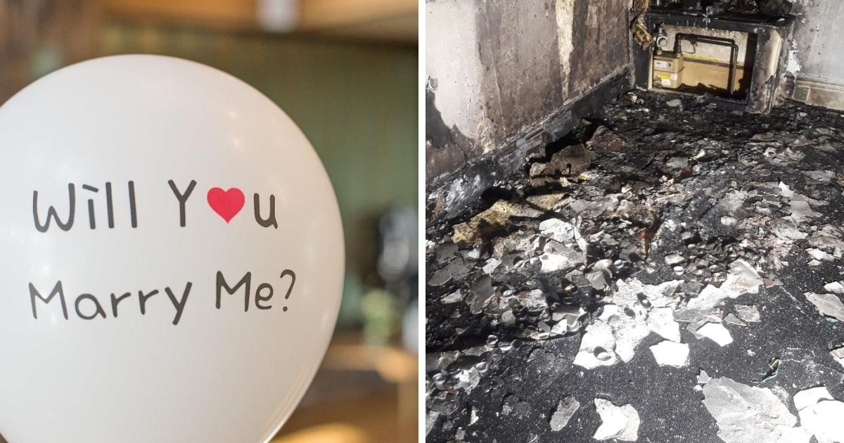 While the surprise didn’t go as planned, and an apartment burned in the process, the man allegedly got what he wanted as his girlfriend agreed to marry him.