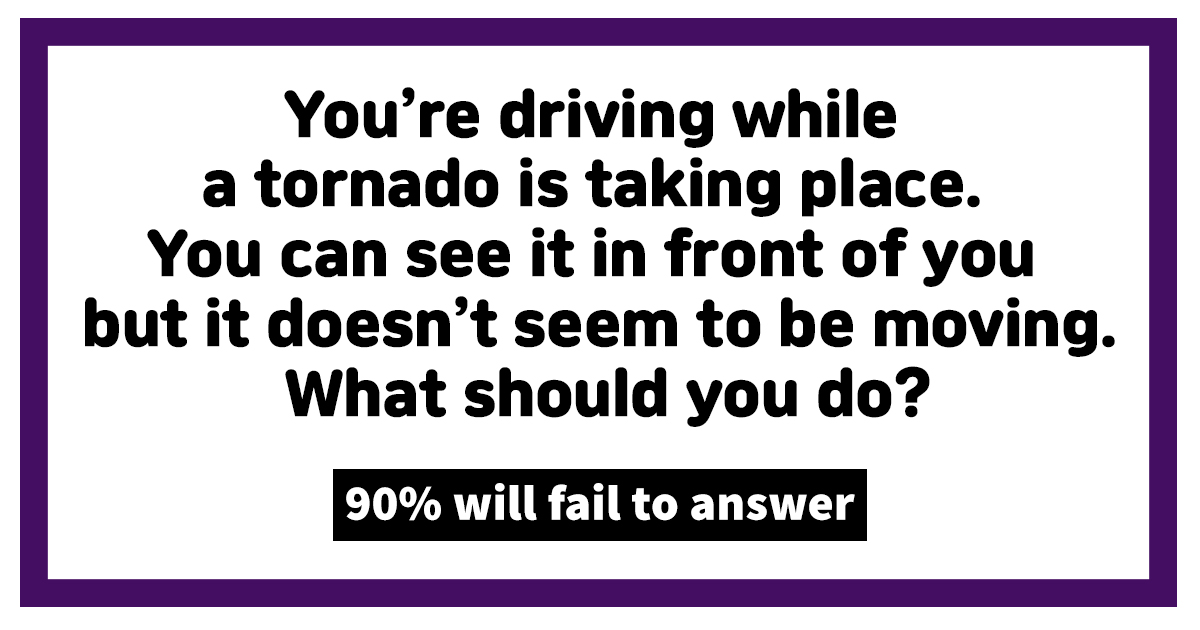 The right answer is to drive in a perpendicular direction with respect to the direction of the tornado!
