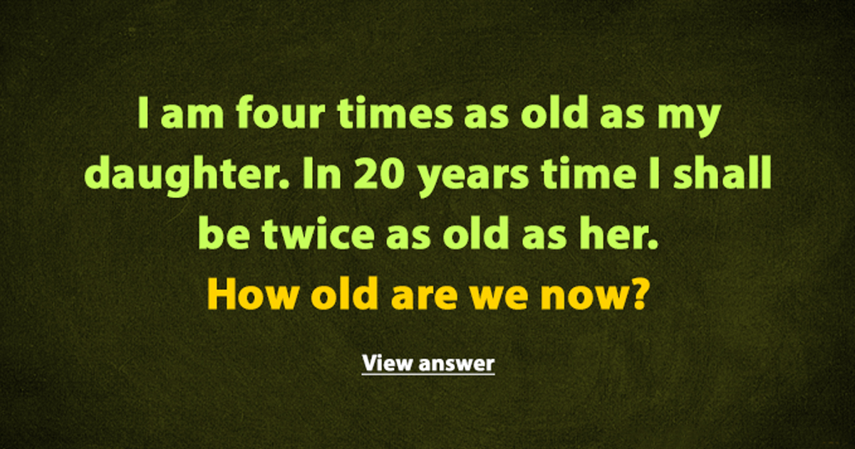 Alright, this riddle asks you to read the lines shown above and figure out the correct age of the girl and her family member. Do you think you can do it? We promise that if you read between the lines, you’ll succeed.