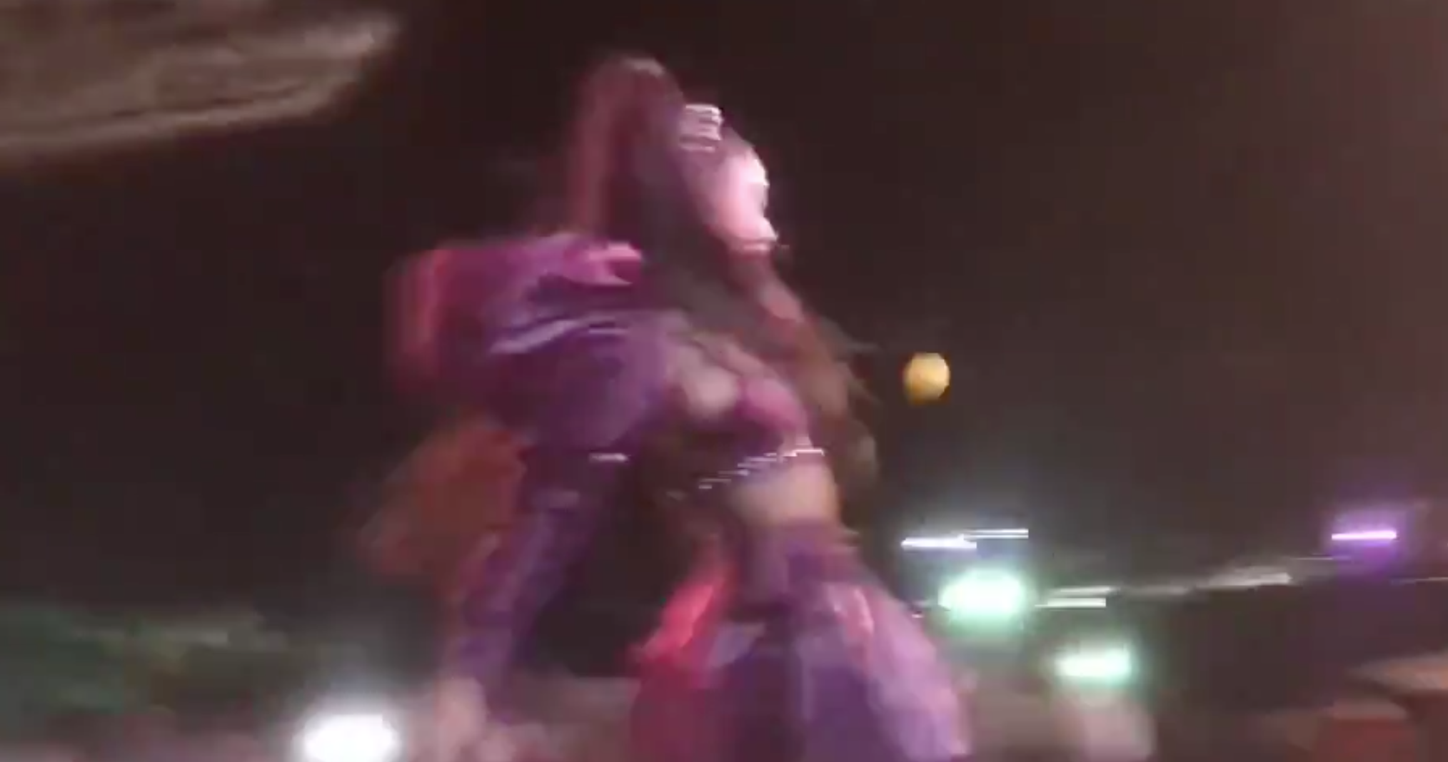 In the video which went viral on Twitter, the 25-year-old pop singer is seen getting struck by a large lemon wedge while performing her song NASA on the main stage.