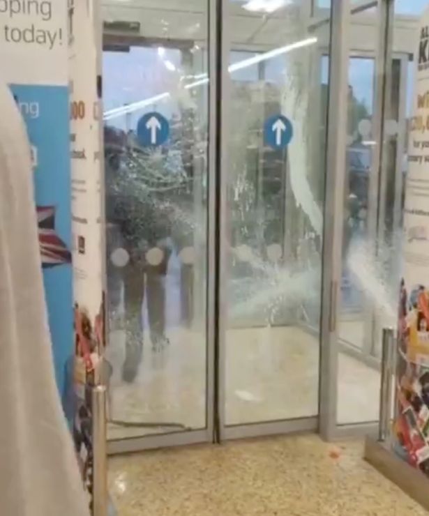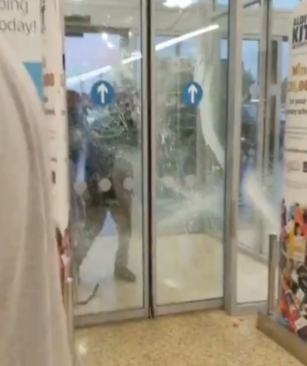 Two youths can be seen repeatedly smashing a fire extinguisher into the front door of the store in the video which has now gone viral.