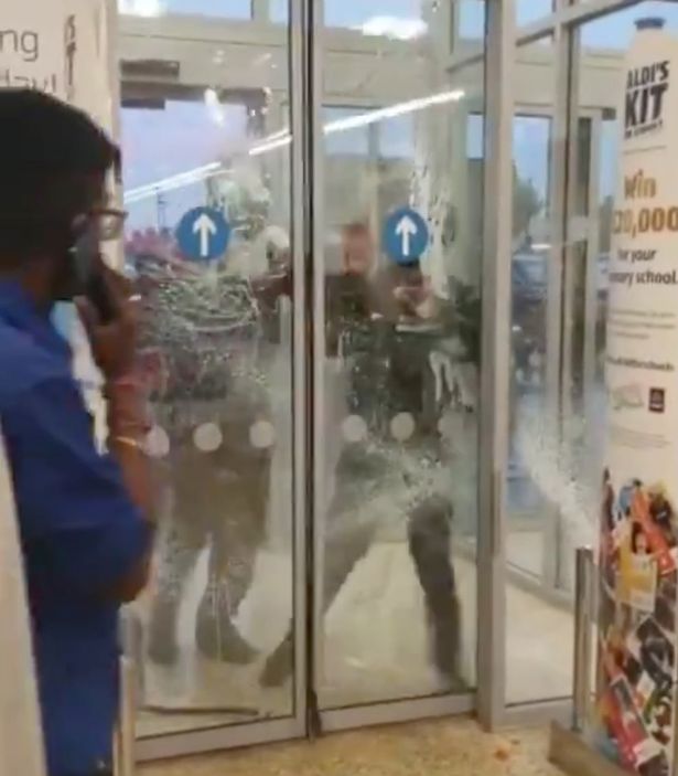 The shoppers at an Aldi store in South Ruislip were left horrified when a gang wearing knuckle dusters attempted to break-in.
