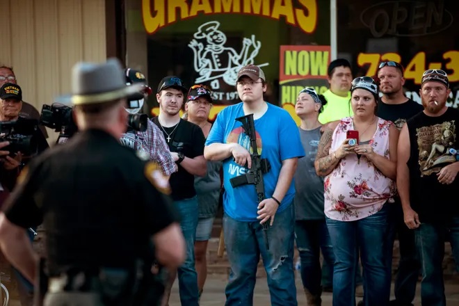 While the planned event was intended to be a peaceful protest attended by a few dozen people, the protesters were surprised as large crowds of counter-protesters – including members of bikers groups and groups advocating the Second Amendment – started showing up.