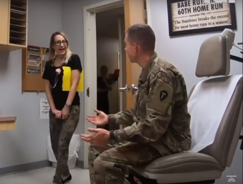 Watch: Texas military husband poses as patient to surprise doctor wife at work