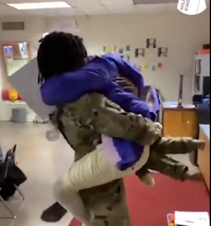In this video that went onboard, we see an army mom surprising her three kids by going to their school without any prior notice.