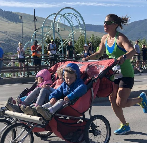 In 2018, she broke the Guinness Record for the fastest and swiftest to complete half-marathon while pushing her three children in Missoula.