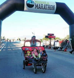 If the latest report is anything to be believed, Cynthia Arnold, this year, finishes Missoula Marathon with three a triple stroller in 3:11.
