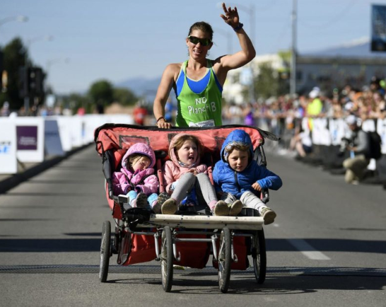 The recent report that is mentioned above is the proof that it is not the first time that the world is witnessing this 35-year-old mother with a triple stroller running with her three babies and wielding the trio of tykes and then manages to complete and reach the finishing mark.