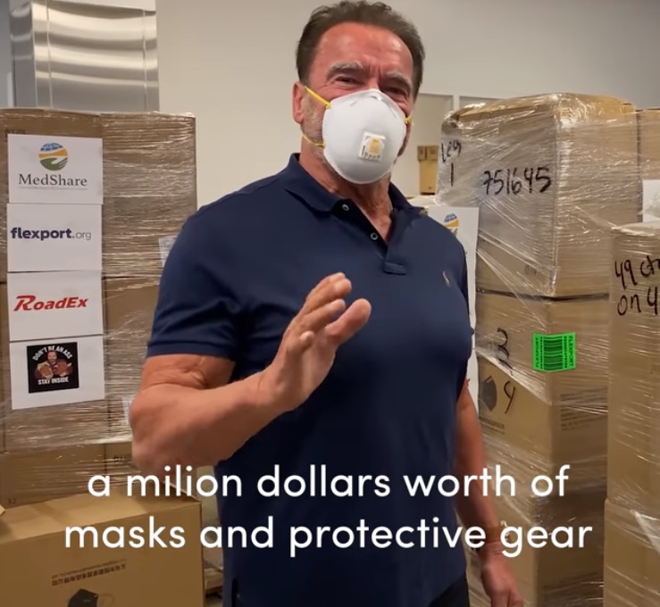 With the former governor’s substantial financial help, some 50,000 masks were delivered to a busy hospital in Los Angeles.