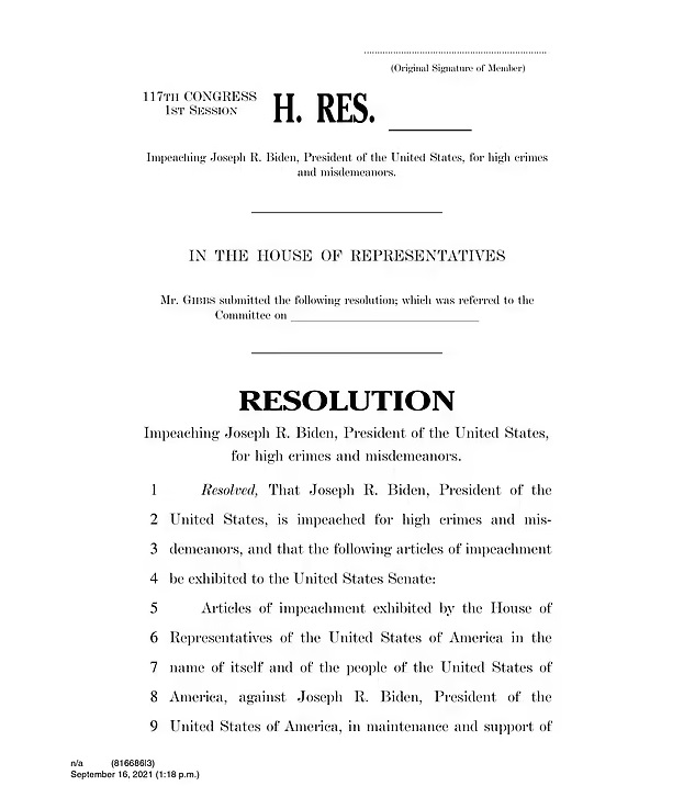 Joining Gibbs’ efforts to impeach the president are Reps. Brian Babin of Texas, Andy Biggs of Arizona, and Randy Weber of Texas.